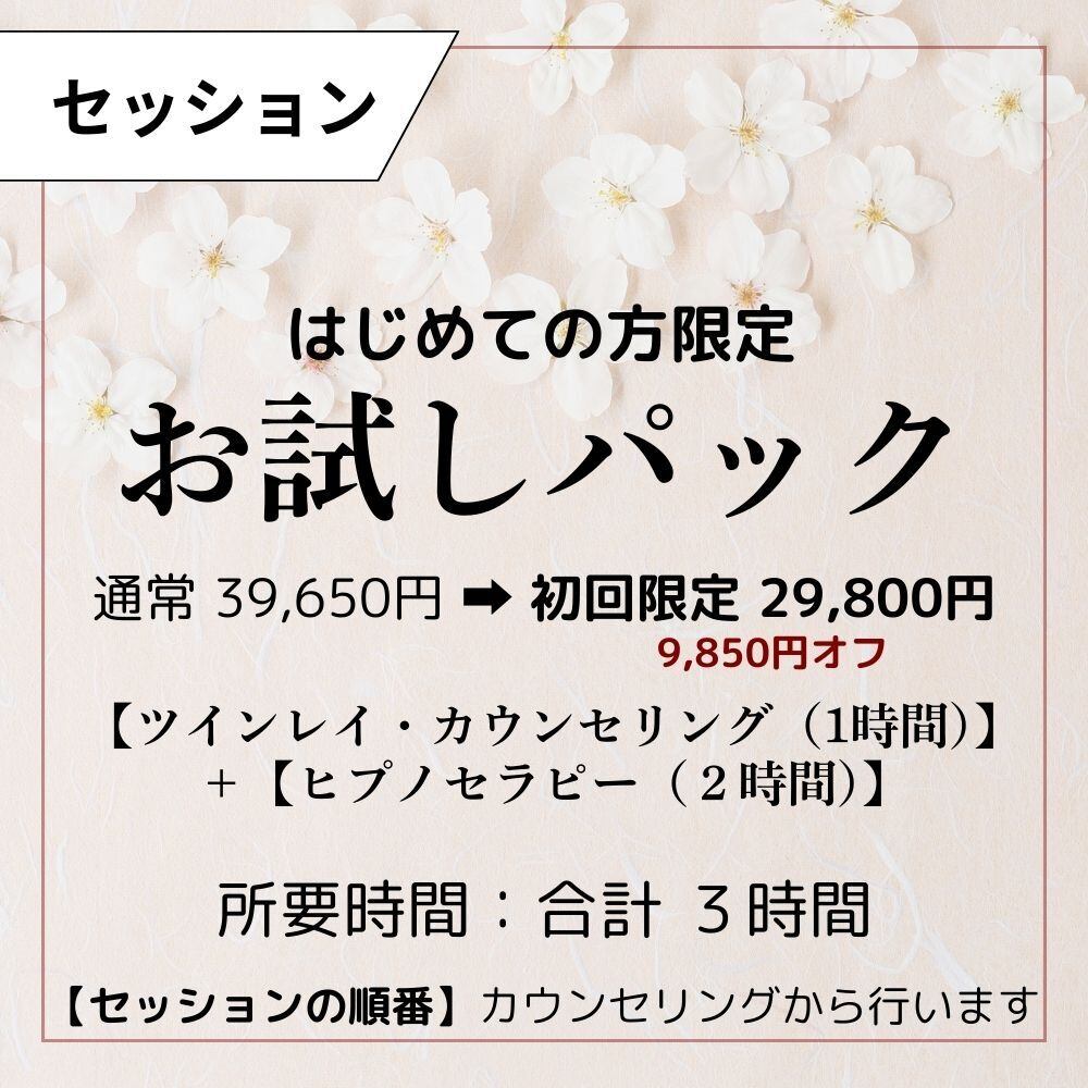 はじめてさん お試しパック【ツインレイ・カウンセリング(1H)+ヒプセラピー(2H)】【ZOOM】【1回限定】【ZOOM】